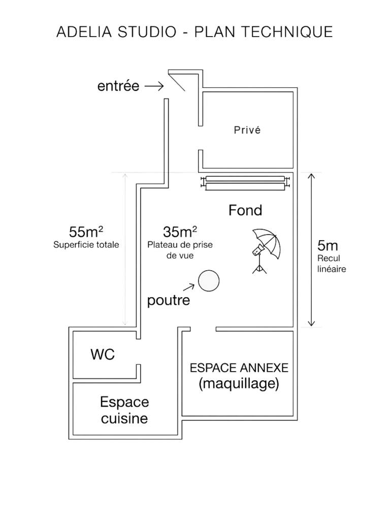 - Équipement : Flashs studio GODOX, modeleurs (octobox), fonds blanc (possibilité d’acheter son fond) et espace stylisme/maquillage dédié.